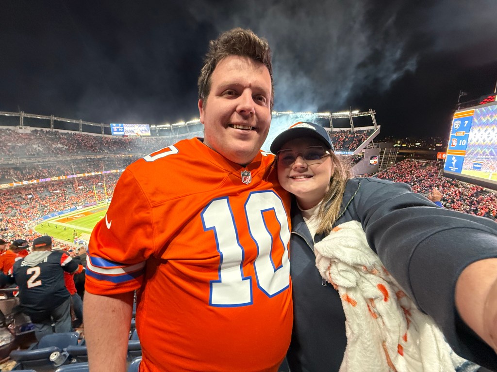 In our daily life, we love cheering on our favorite sports teams together. We are big basketball fans — we can often be found watching the Phoenix Suns and trying to attend as many home games as possible. Jessica also loves the Milwaukee Bucks and gets especially excited when they come to Phoenix to play. Tony is a huge Broncos fan, and we even had the chance to go to a Broncos game together, which was an unforgettable experience. Going to games, watching highlights, and sharing the excitement of sports is a special way we bond, laugh, and create memories together.